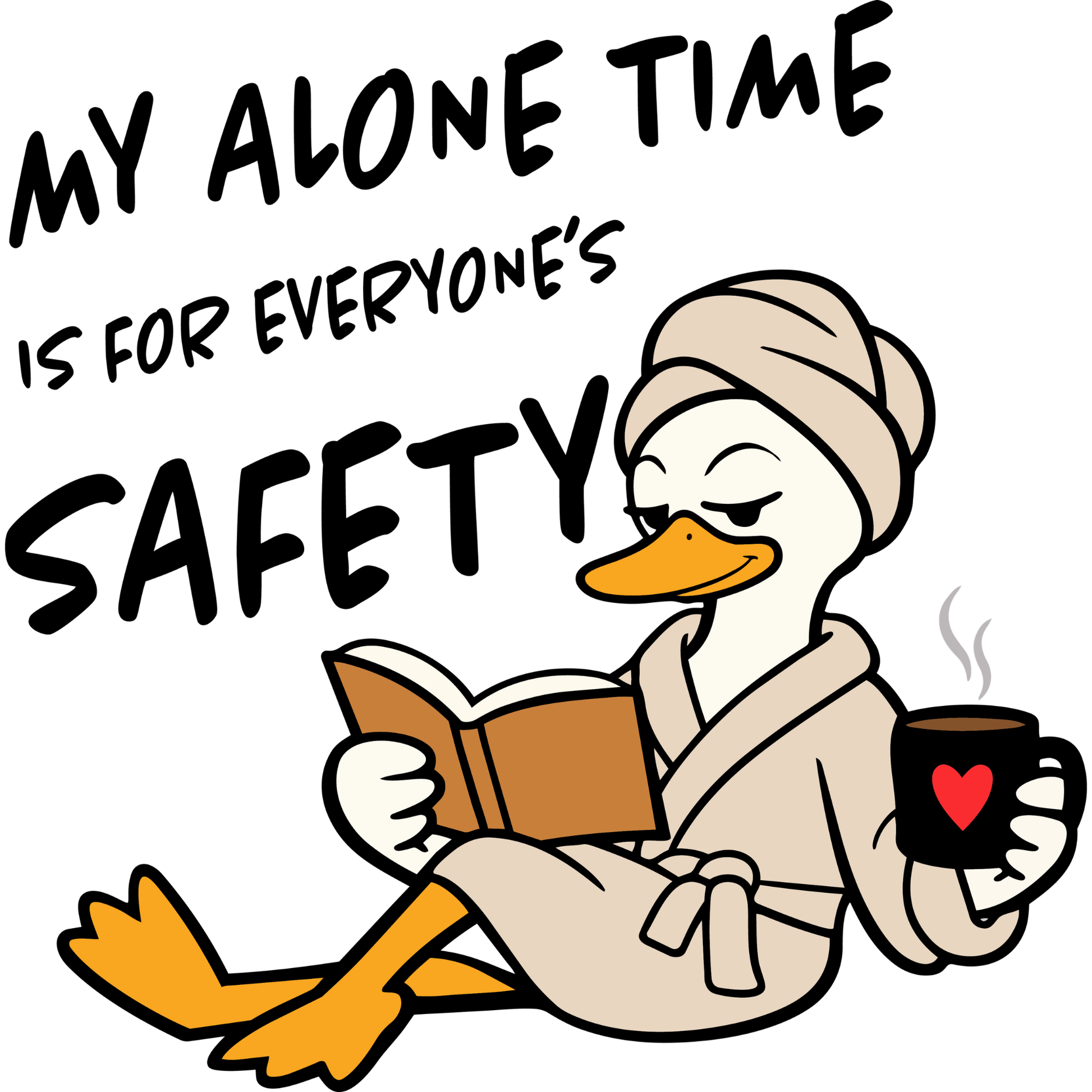 Bring humor and personality to Motherโs Day with this adorable ๐๐ฒ Alone Time Is For Everyoneโs Safety Design โ DTF Ready To Press. Featuring a relaxed duck character in a bathrobe enjoying coffee and reading a book, this playful design perfectly captures the reality of busy moms needing a little peace and quiet.