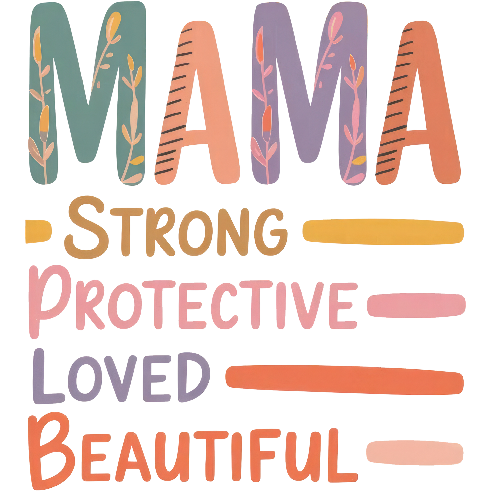 Mama Strong Protective Loved Beautiful DTF Transfer β Inspirational Motherhood Quote Graphic Shirt Design DTF Ready To Press